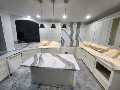 When these details are planned correctly, the countertop becomes more than just a surface; it becomes a key focal point of the kitchen. Thoughtful edge profiles, waterfall designs, and well-placed seams make the space feel intentional and polished. Full-height backsplashes and integrated islands add both function and style, improving usability while elevating the overall design. Together, these elements create a kitchen that’s visually striking, practical, and built to last.